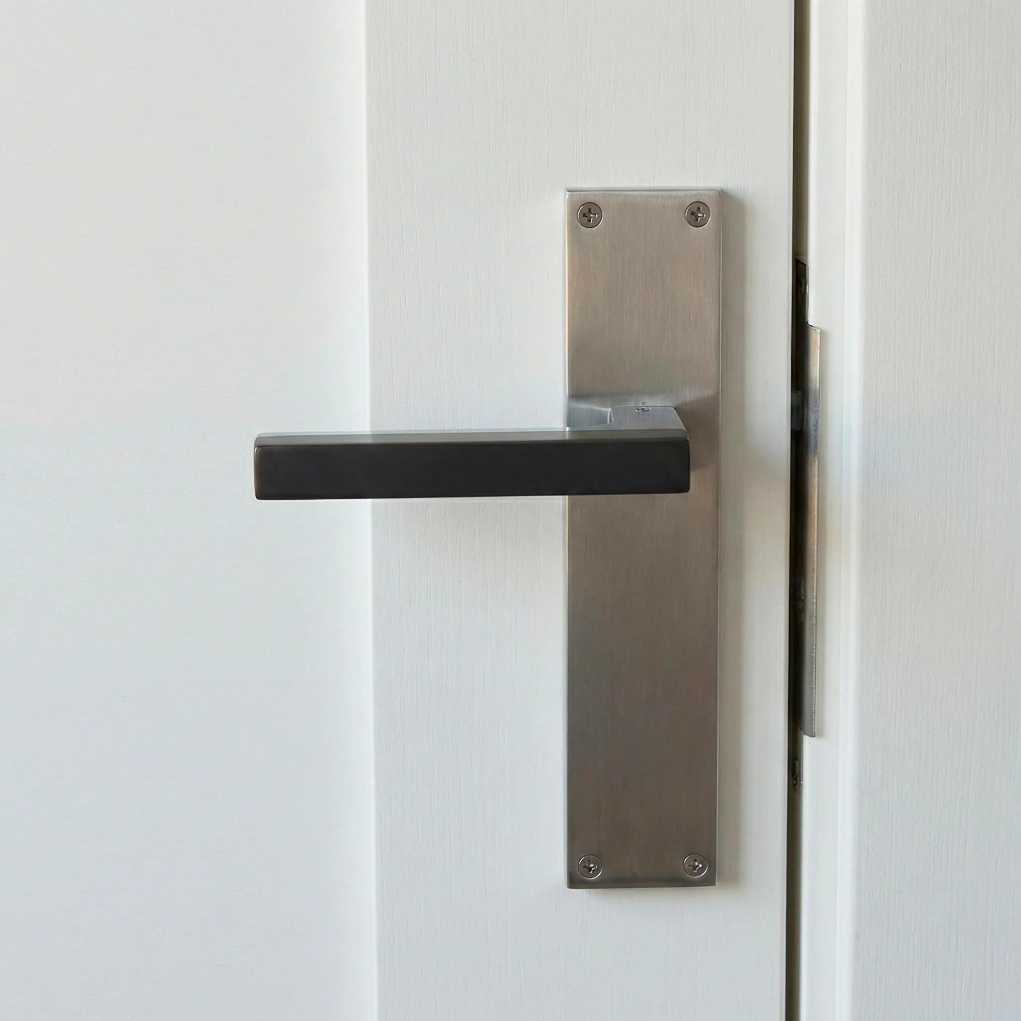 Manilla modelo '848' de zamak para puertas con placa rectangular acabado bicolor grafito