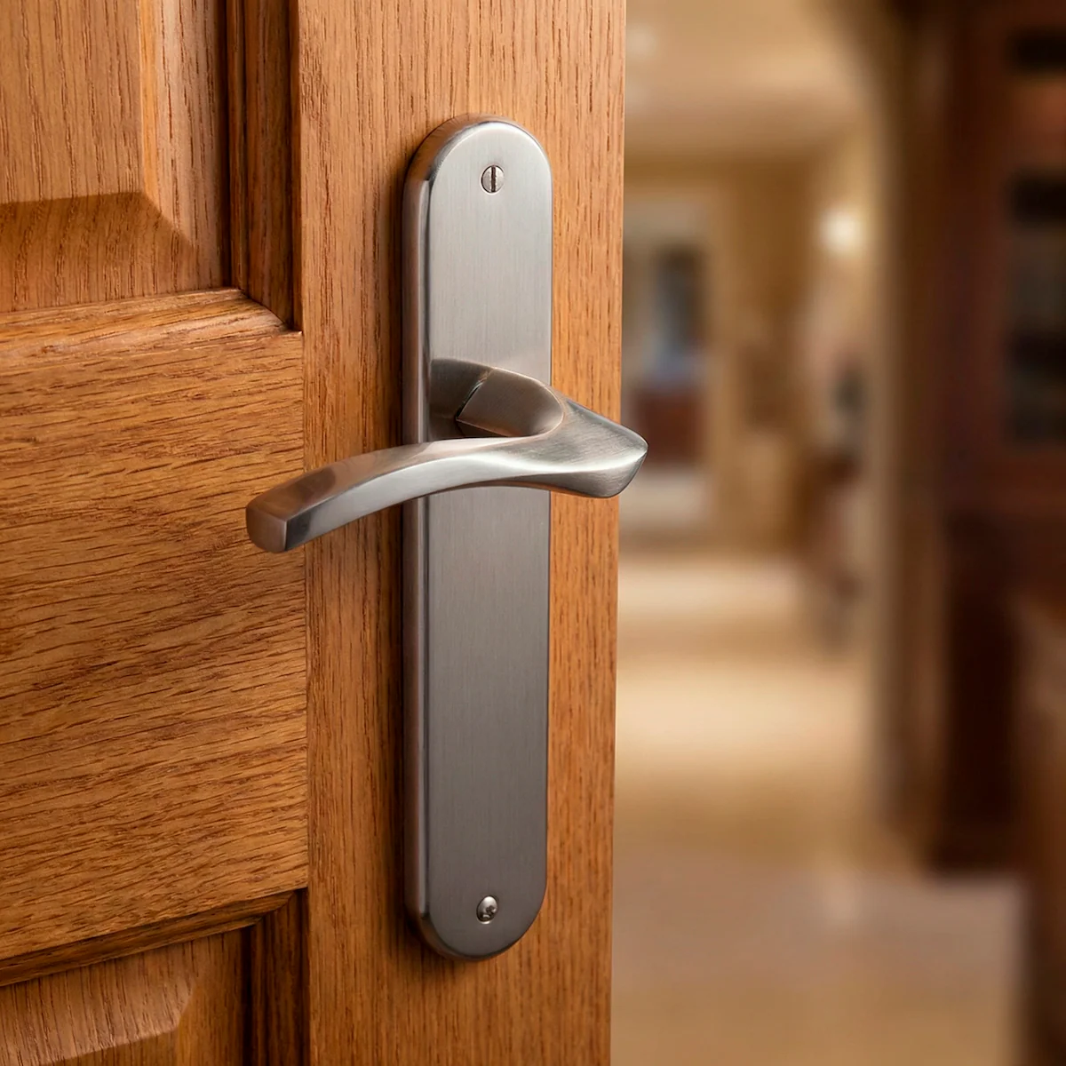 Manilla moderna modelo '1027' con placa ovalada acabado níquel satinado para puertas