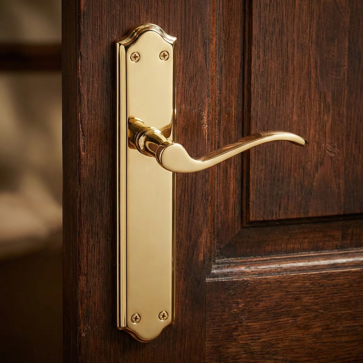 Juego de manillas (2 manillas; 1 para cada lado de la puerta) con placa ovalada curva estilo rústico de aluminio en acabado dorado brillo para puertas de interior. Esta manilla con placa, aporta un toque de estética y elegancia a las puertas de tu casa. Sigue un diseño original ideal para instalar con cualquier tonalidad de puerta. Además, esta manilla con placa tiene un precio escandaloso por lo que ¿A qué esperas para renovar las manillas de tus puertas?