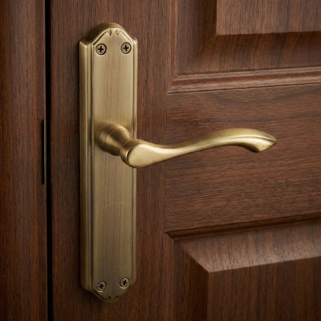 Manilla rústica modelo '341' acabado cuero con placa oval de zamak para puertas