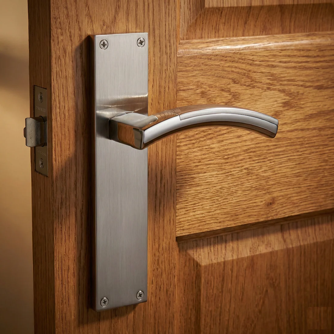 Manilla modelo '420' de zamak en acabado bicolor con placa rectangular para puertas