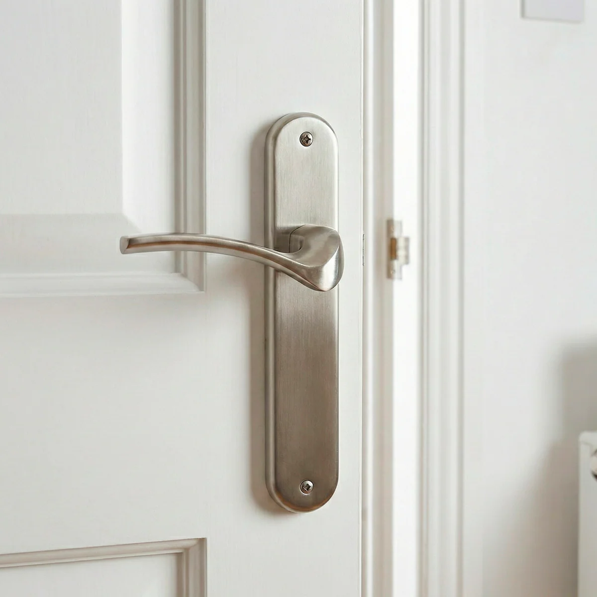 Manilla modelo '930' de zamak con placa ovalada acabado níquel satinado para puertas
