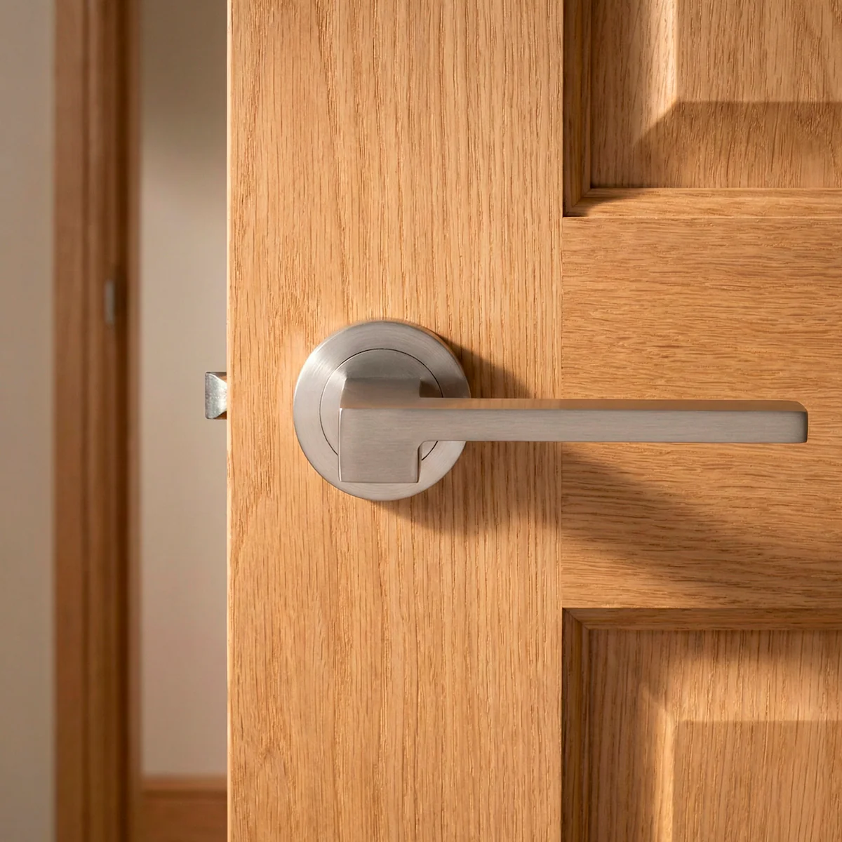 Manilla Lugh con roseta redonda en níquel mate para puertas