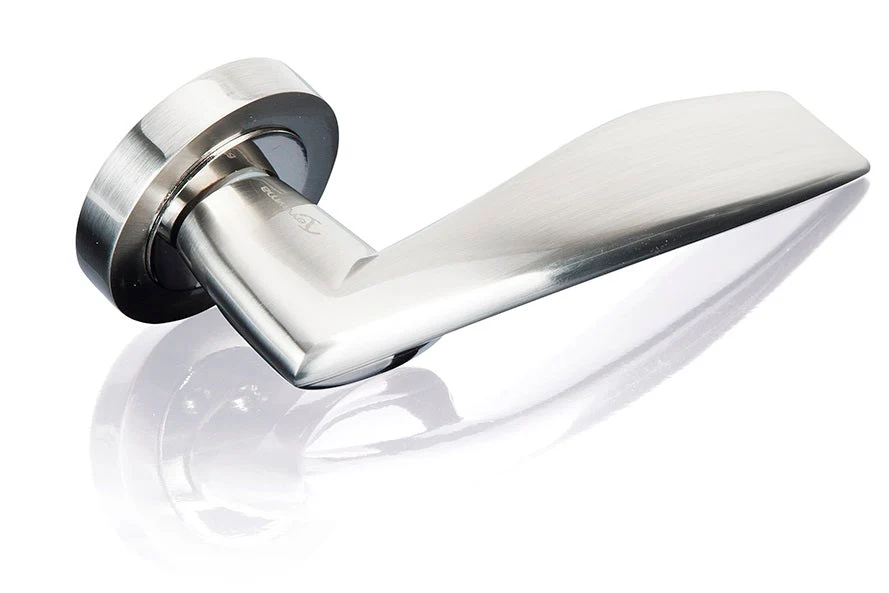 Manilla modelo '440' de zamak con roseta redonda y asa curva acabado níquel satinado para puertas