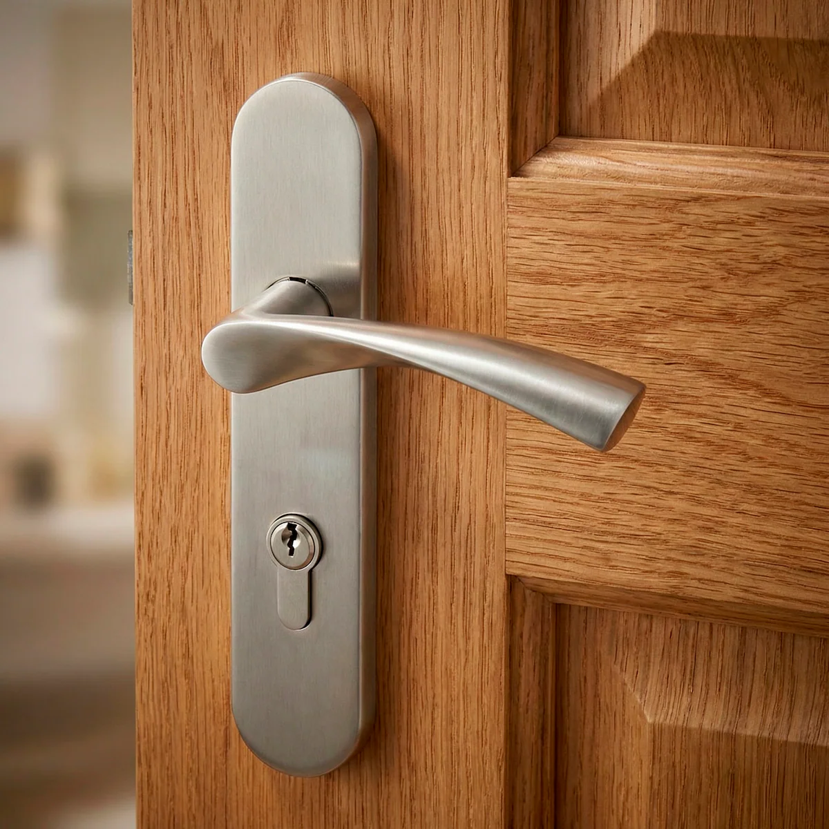 Juego de manillas (2 manillas; 1 manilla para cada lado de la puerta) ola con placa ovalada de acero inoxidable con tornillos ocultos para puertas de interior y de exterior. Este juego de manillas de acero inoxidable para puertas, es un modelo clásico, muy elegante y ideal para vestir cualquier puerta aportando un toque de calidad. Además, viene con todos los accesorios necesarios para su instalación por lo que ¿A qué esperas para renovar las manillas de tus puertas?