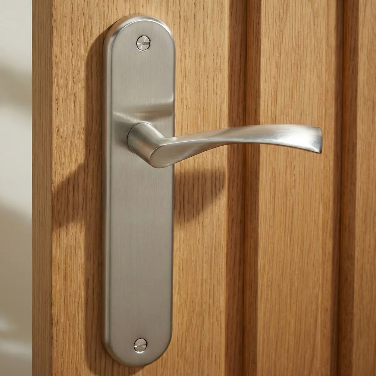 Manilla modelo '130A' ola con placa ovalada de aluminio para puertas en acabado níquel satinado