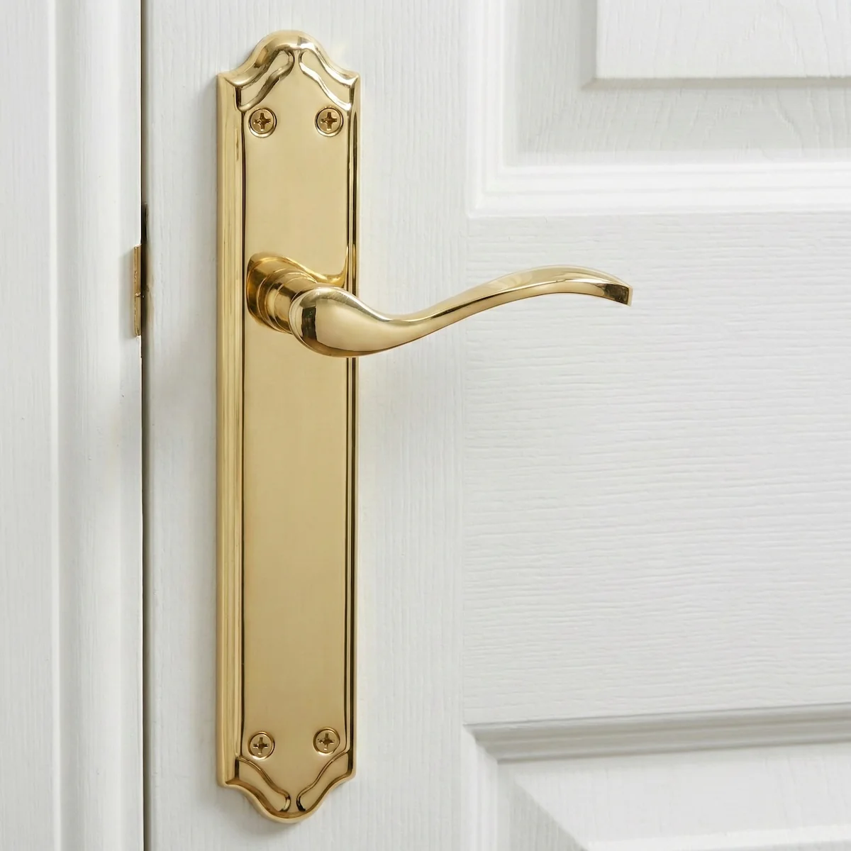 Manilla modelo LOREA PB con placa dorada brillante de aluminio para puertas